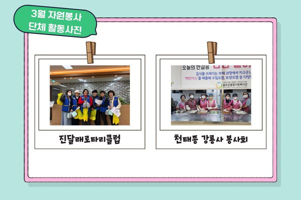 우리 복지관에서는 3월 한 달동안 지역주민과 함께하는 다양한 자원봉사 활동을 진행하여 그 따뜻한 현장을 담은 활동 사진을 함께 공유합니다.