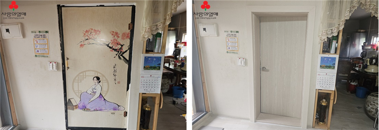 또한, 이번 공사에는 시공업체인 금강지물 인테리어 사장님의 무상 지원으로 LED등이 추가 설치되어 대상자들의 생활 편의가 더욱 향상되었습니다.