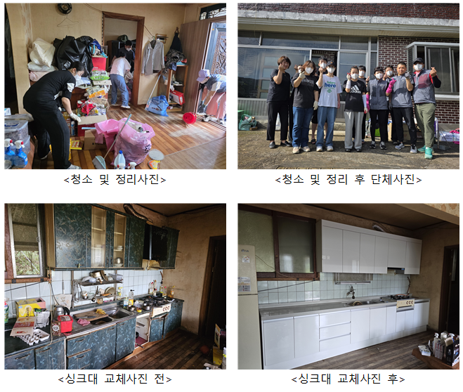 10월 1일(수)에는 홍천군종합사회복지관·홍천군서면행정복지센터·홍천군사회복지협의회가 협업 하여 노후 싱크대를 교체하였습니다. 바뀔 싱크대 의 사이즈를 직접 정하였기에 더욱 만족해 하셨어요!! "싱크대가 못 쓸 정도로 낡아 집에서 요리하기 힘들었는데, 청소와 싱크대 교체를 해 주셔서 정말 감사합니다"라며 감사인사도 들었습니다 ^^