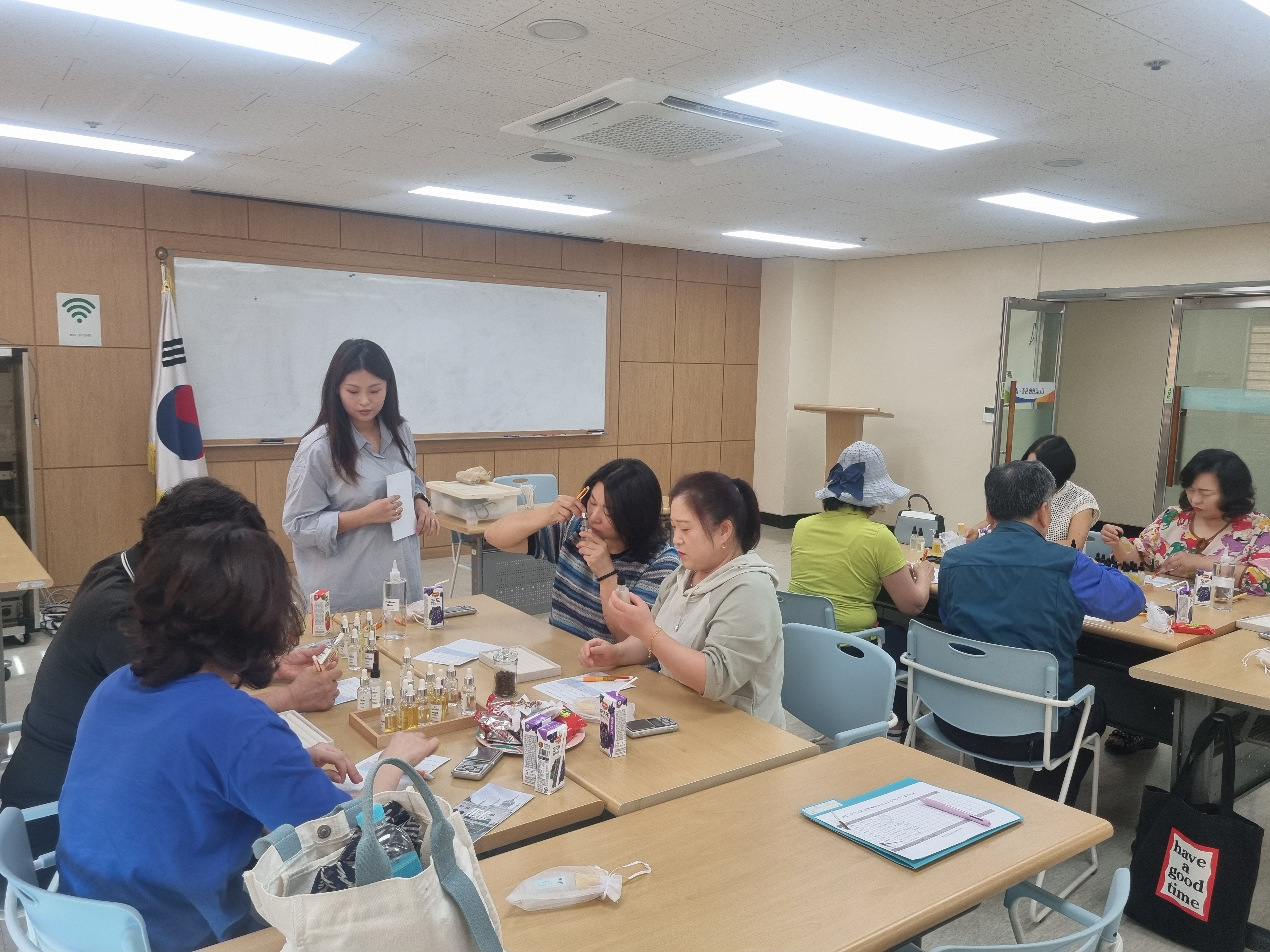 내용: 아로마 테라피 - 감정 안정과 자기 돌봄을 위한 멀티 향수 만들기를 진행했습니다! 내 취향에 맞는 향수를 만들고 힐링도 하는 시간이 되었습니다🙂
