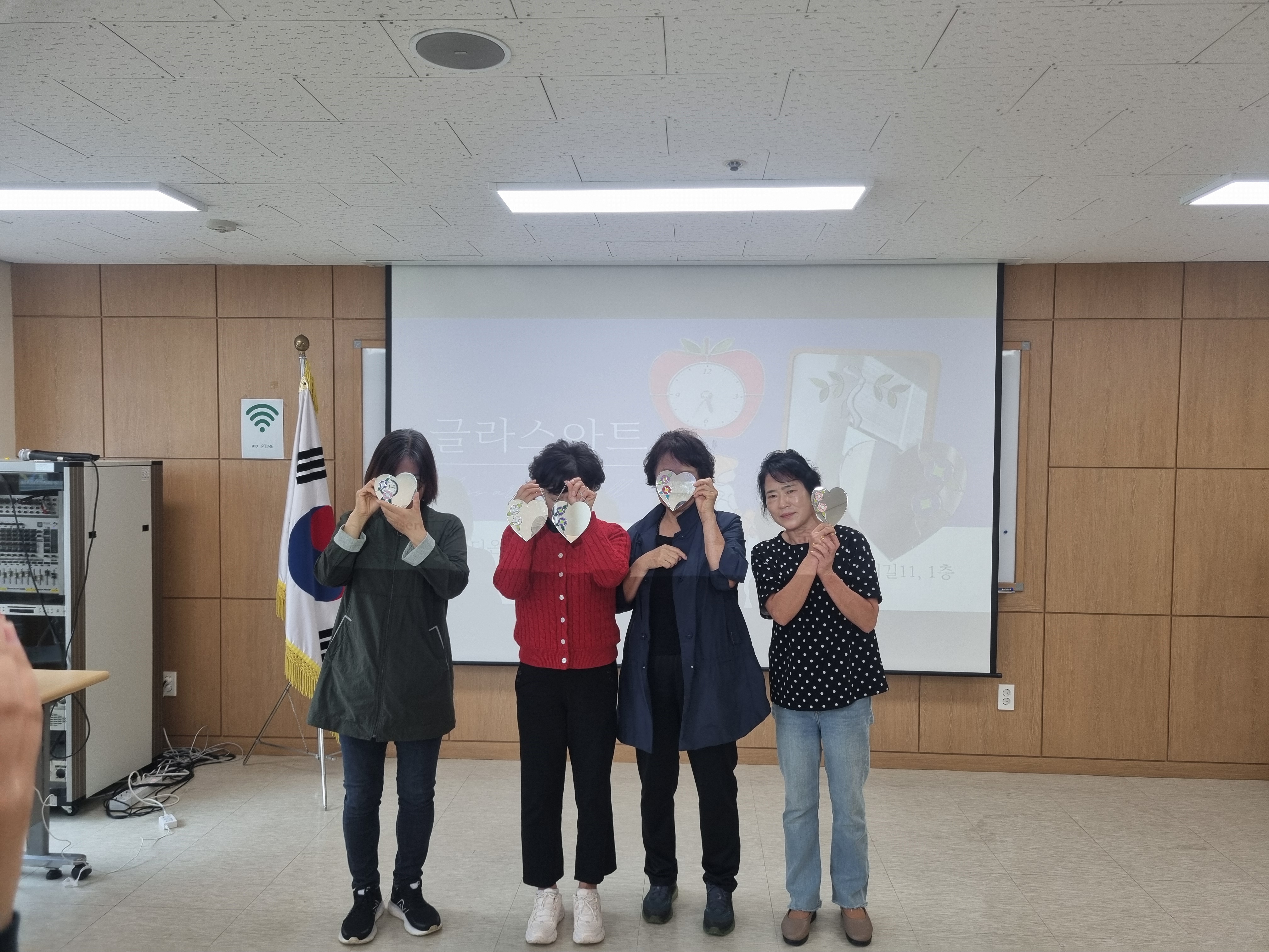 내용: 나를 돌보는 시간 - 글라스아트 6회기에서는 아크릴 거울 만들기를 진행했습니다! 종이를 오려 거울을 꾸미고 나 자신을 비추는 시간!!을 가졌습니다💛