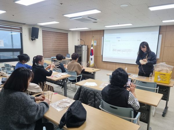 내용: 12회기에서는 라탄 미니 바구니 만들기, 이웃사랑 실천가의 상담 방법, 수료식이 진행되었습니다. 먼저, 라탄 미니 바구니 만들기 체험활동으로 손작업을 통한 정서 안정 및 스트레스 완화, 활동가들 간 자연스러운 소통을 하는 시간이였습니다! 또한, 본 복지관 방지홍 사회복지사의 진행으로 상담 기본 원칙 안내, 주민 및 취약계층 대상 기본 상담 태도 및 접근 방법 교육도 진행했습니다. 이번 12회기를 끝으로 '이웃사랑 실천 활동가 양성과정'은 마무리 되었고 총 13명의 이웃사랑 실천 활동가들이 수료를 했습니다:) 앞으로 우리 활동가들의 따뜻한 활동 기대해주세요💛