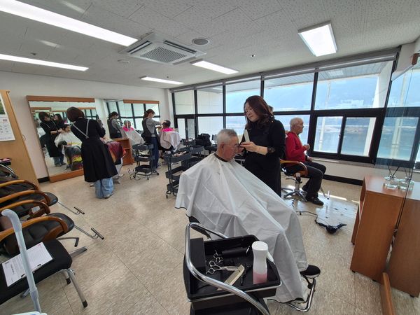어르신들끼리 서로를 바라보며 “머리 잘 잘랐다”, “젊은 사람 같네”라며 칭찬을 건네기도 하셨습니다. 서로 웃으며 이야기를