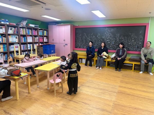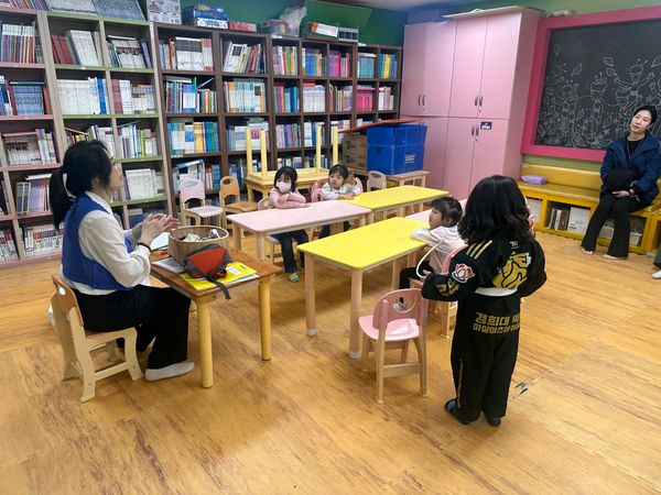 내용 : 스토리 아트는 자연을 소재로 한 스토리 활동을 통해 언어능력 · 소통능력 · 창의적 사고 등을 확장시킬 수 있는 활동입니다. 동화책과 자연사진을 매개로 상상력과 창의적 사고를 확장시키고, 다양한 역할놀이와 만들기를 통합하여 전인적 발달을 지원함으로써 자연의 소중함과 생명존중의 가치를 이야기 속에서 자연스럽게 이해하도록 도울 수 있는 프로그램입니다. 첫 시간으로 강사님과 보호자들의 오리엔테이션 현장을 들여다 볼까요?