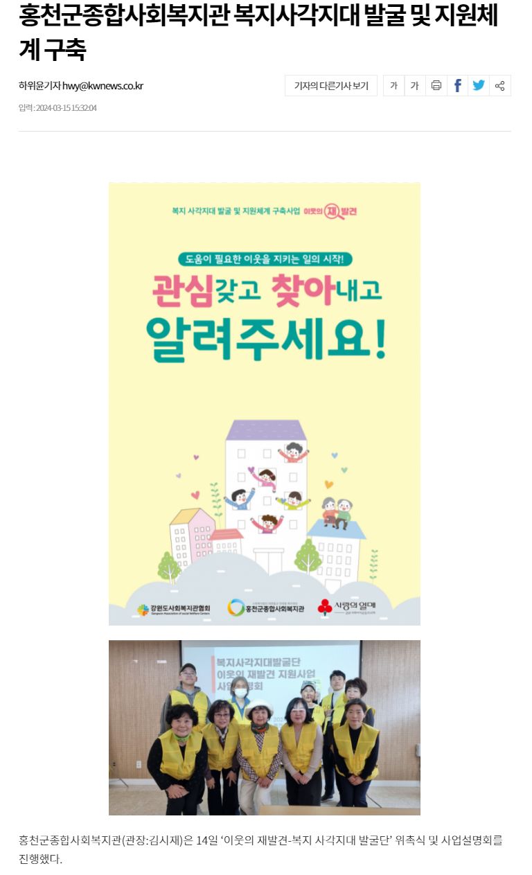 홍천군종합사회복지관 복지사각지대 발굴 및 지원체계 구축