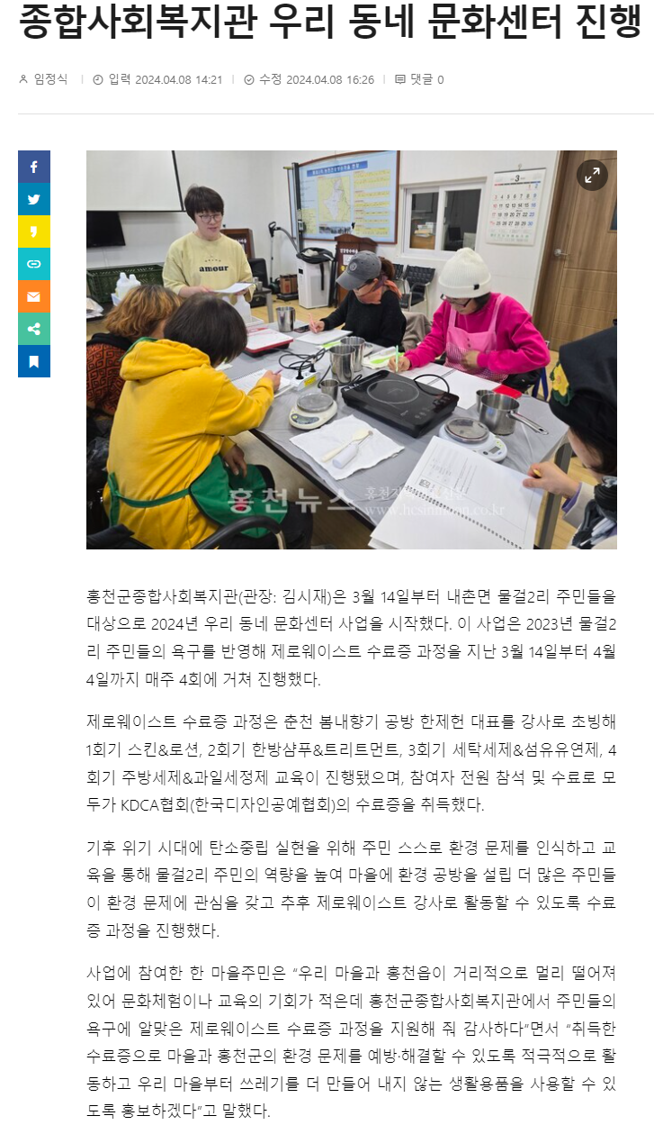 - 다음글 홍천뉴스_종합사회복지관, 모을꼬지 사업 운영 2024.04.11
