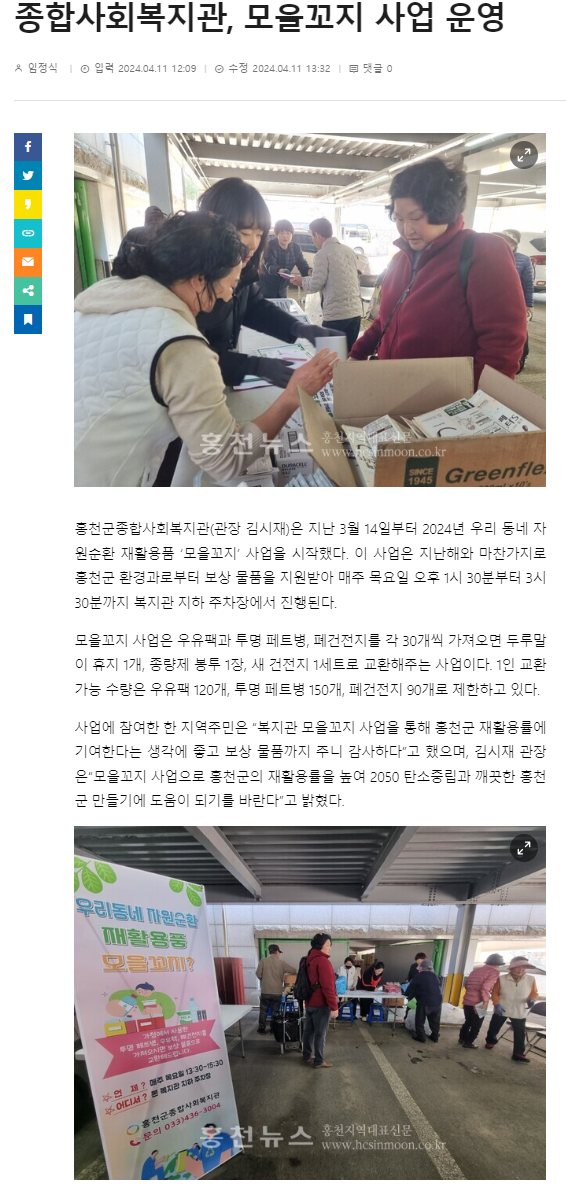 홍천뉴스_종합사회복지관, 모을꼬지 사업 운영