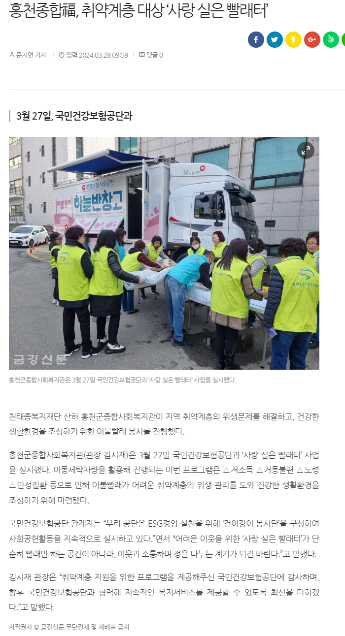 금강신문_홍천종합福, 취약계층 대상 '사랑 실은 빨래터'