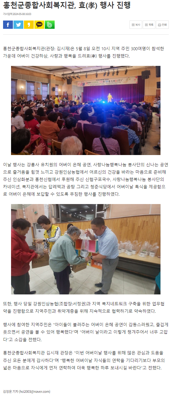 홍천인터넷뉴스_홍천군종합사회복지관, 효(孝) 행사 진행