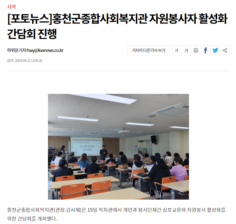 강원일보_[포토뉴스]홍천군종합사회복지관 자원봉사자 활성화 간담회 진행