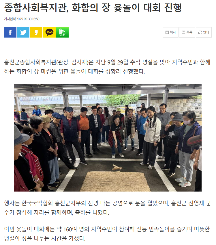 홍천군종합사회복지관, 추석맞이 ‘화합의 장 윷놀이 대회’ 진행