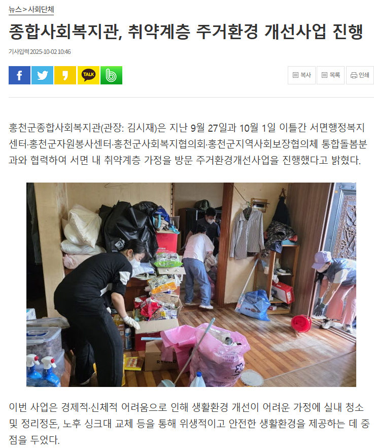 홍천종합사회복지관, 취약계층에 주거환경 개선 사업 진행
