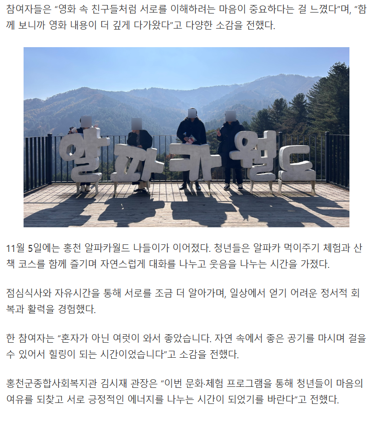 마음 잇는 청년지원사업, 문화·체험 활동으로 마음의 여유와 관계 회복을 나누다