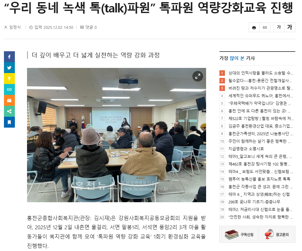 - 다음글 홍천군종합사회복지관, 취약계층 및 복지사각지대 다자녀 가정 후원 2025.12.05