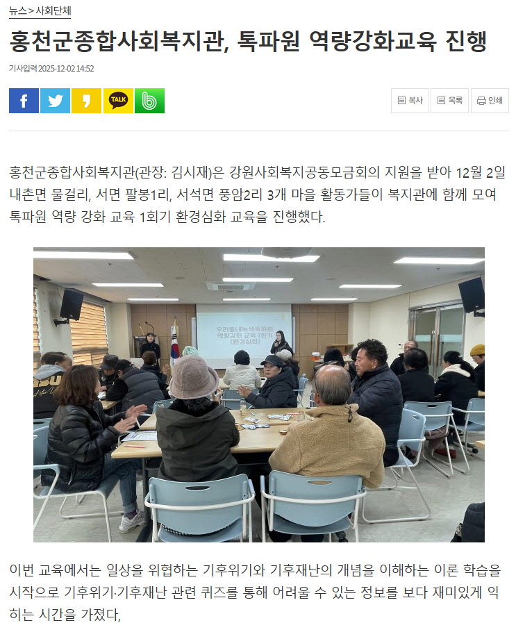 “우리 동네 녹색 톡(talk)파원” 톡파원 역량강화교육 진행