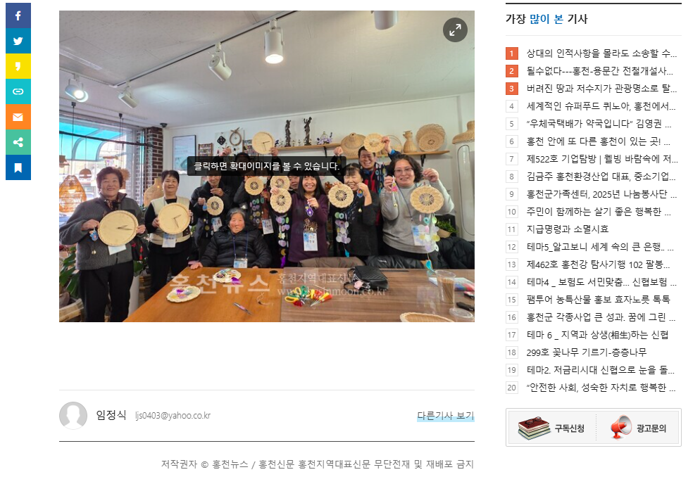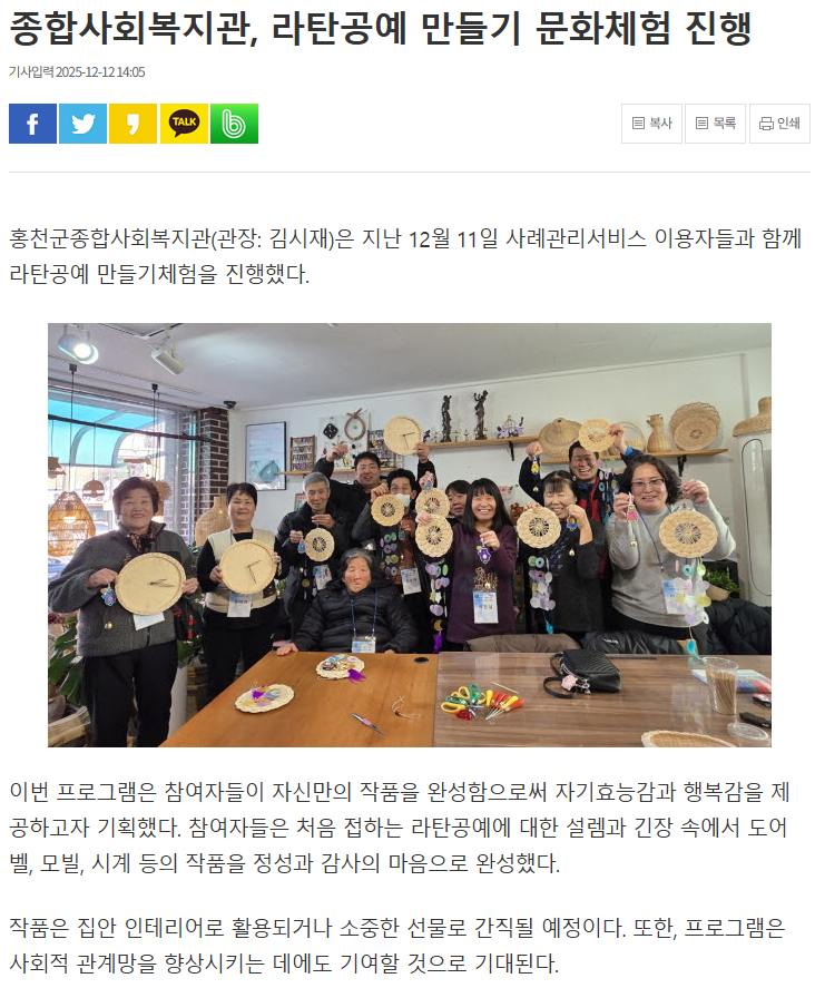 - 이전글 홍천종합사회복지관, 자원순환 ‘모을꼬지’ 참여자 평가회 진행 2025.12.08