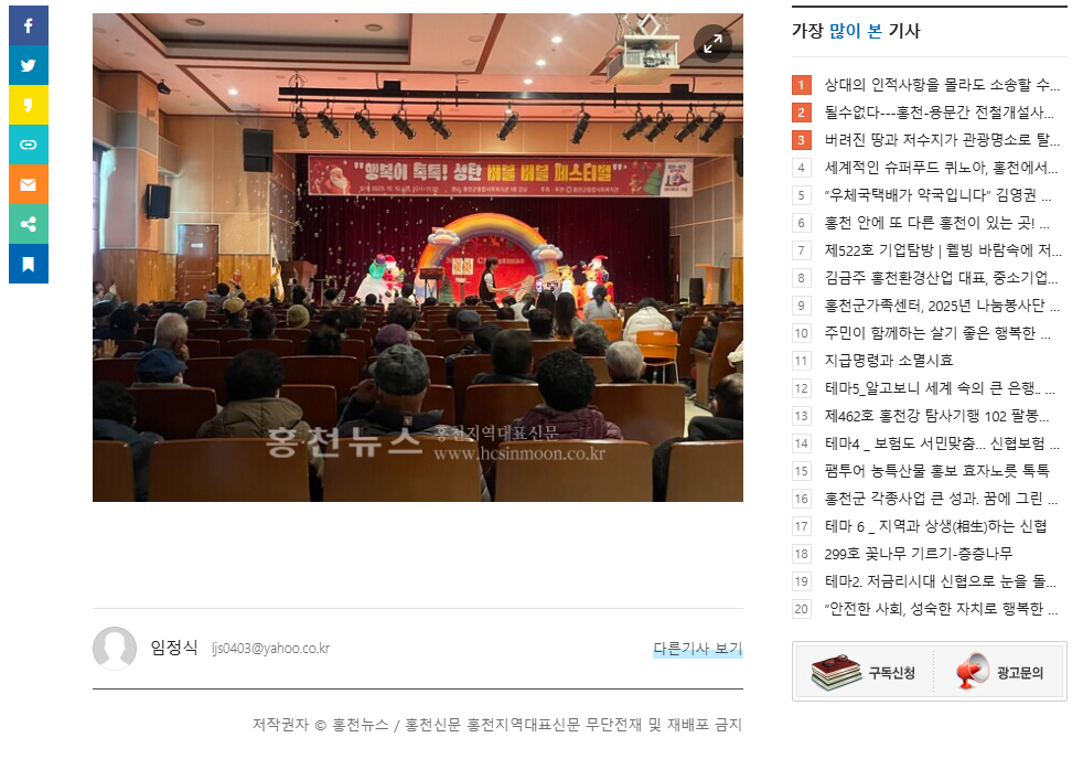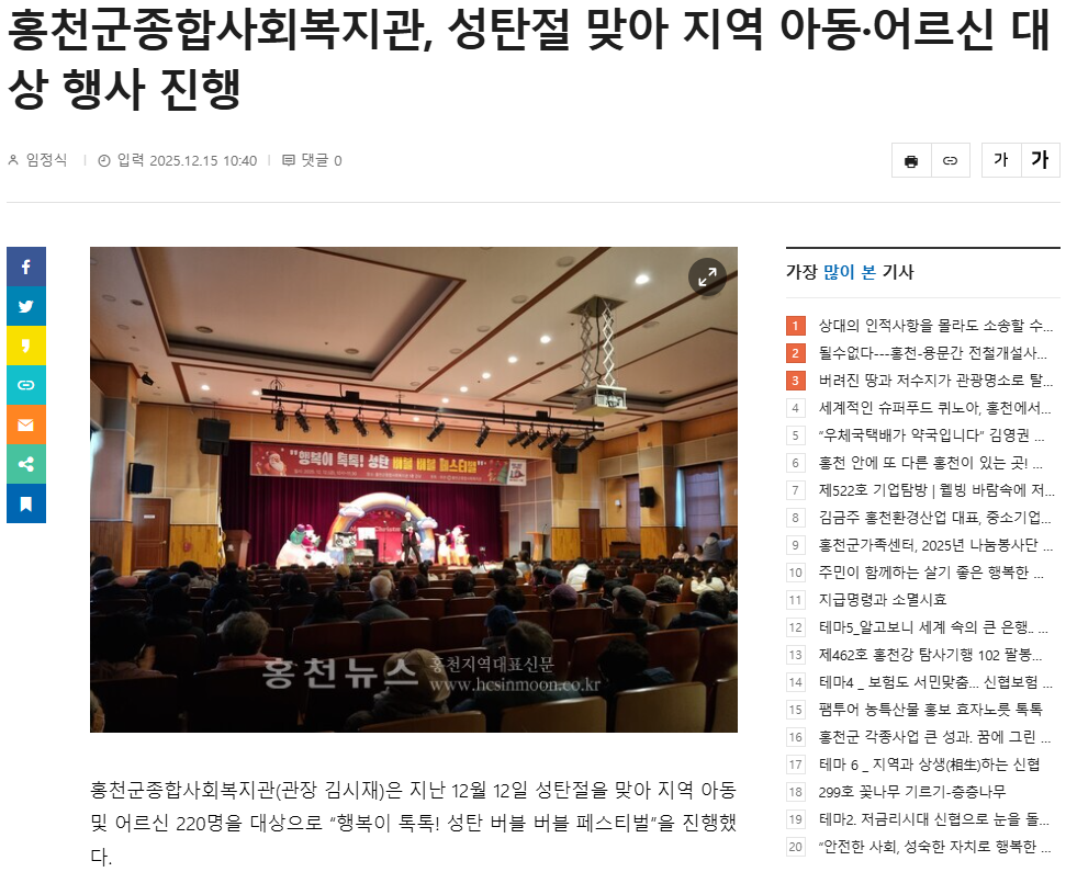 - 다음글 홍천군종합사회복지관, 「강룡사와 함께하는 동지팥죽 나눔 행사」 개최 2025.12.15