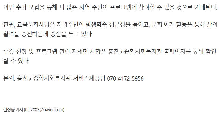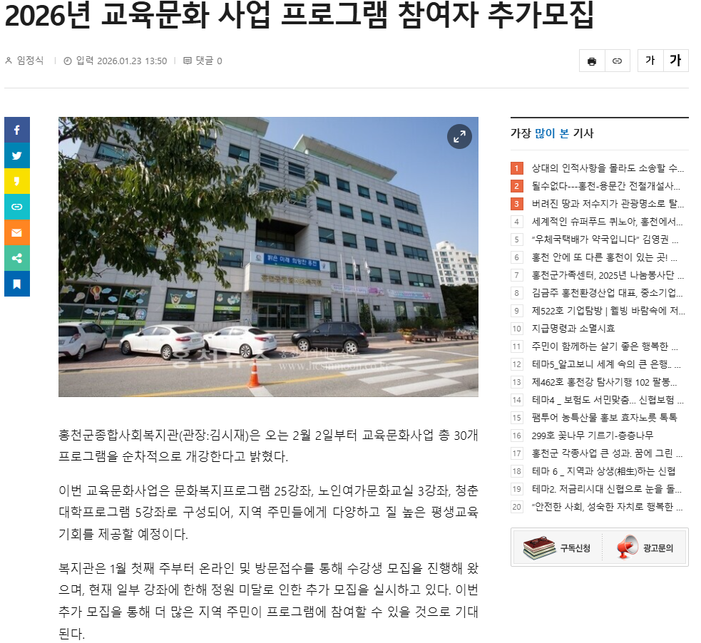 - 다음글 홍천군종합사회복지관, 설 명절 맞아 ‘새해 덕담·안부 나눔 행사’ 운영 2026.01.29