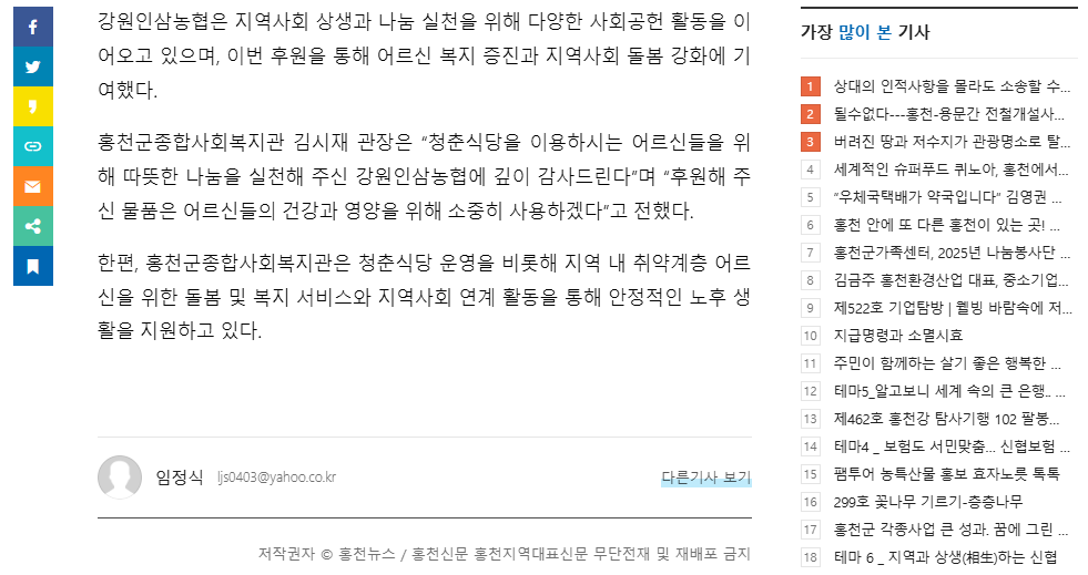 - 이전글 홍천군종합사회복지관, 국민연금공단 홍천지사 온누리상품권 후원 받아 2026.02.02