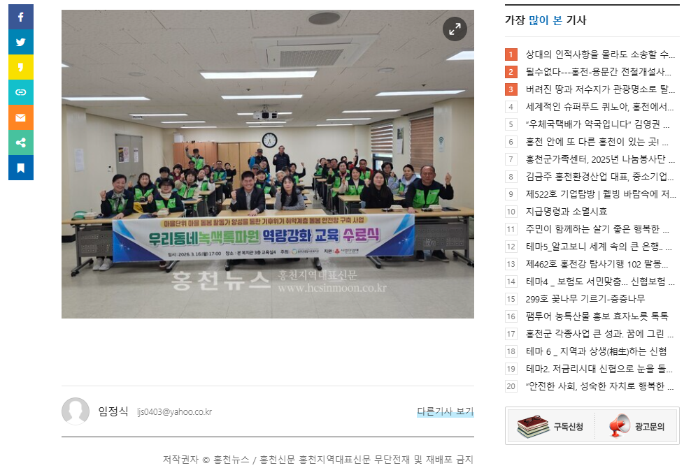 - 이전글 홍천군종합사회복지관, 주거환경개선사업 진행 2026.03.16