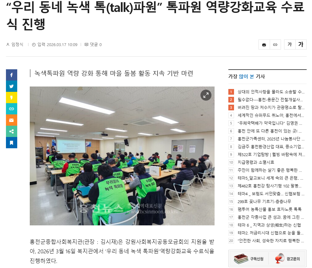 - 다음글 홍천종합사회복지관, 1차 민·관 협력 통합사례회의 진행 2026.03.18