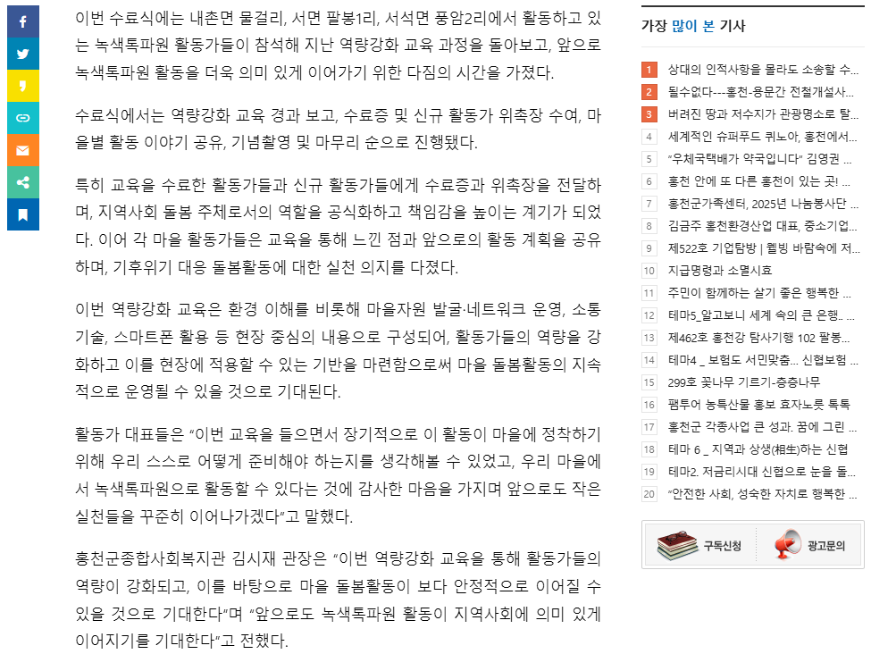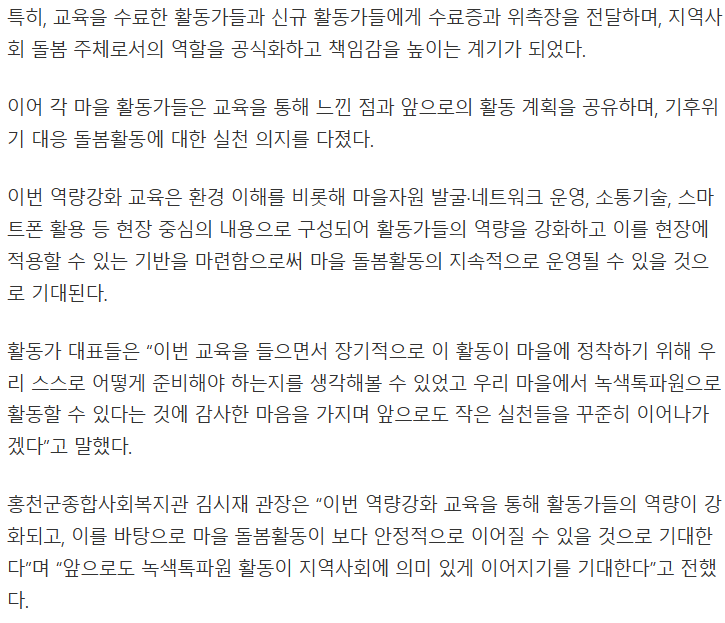 “우리 동네 녹색 톡(talk)파원” 톡파원 역량강화교육 수료식 진행